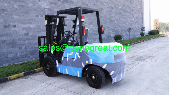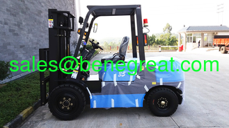 3.0-4.0T camión elevador de contrapeso diesel está compuesto principalmente de motor, transmisión, dispositivo de control de operación, dispositivo de trabajo (marco de la puerta interior y exterior, montaje de tenedor, tenedor de palets,cadena de elevación, rodillos, poleas y otros), sistemas hidráulicos y eléctricos.