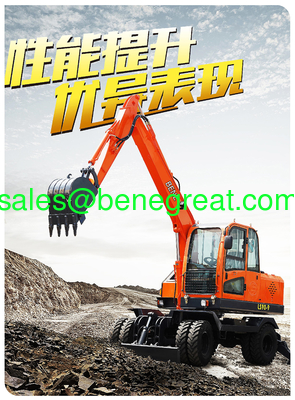 Excavadora de 6 toneladas con mini ruedas y cubo de 0,23 cbm Excavadora de 6 toneladas con ruedas y agarre de troncos para la carga de madera