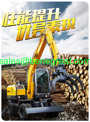 Chinese cheap 6ton mini wheel excavator with 0.23cbm bucket 6 ton wheel excavator with log grab for timber loading