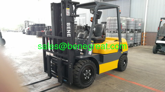 3.0-4.0T camión elevador de contrapeso diesel está compuesto principalmente de motor, transmisión, dispositivo de control de operación, dispositivo de trabajo (marco de la puerta interior y exterior, montaje de tenedor, tenedor de palets,cadena de elevación, rodillos, poleas y otros), sistemas hidráulicos y eléctricos.